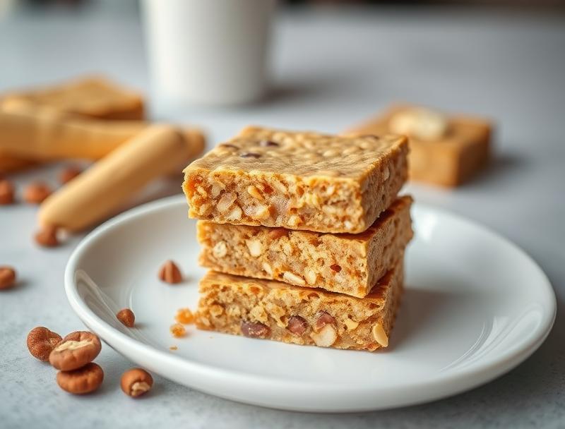No-bake peanut butter protein bars made with oats, peanut butter, and honey, perfect for a quick snack or post-workout treat.